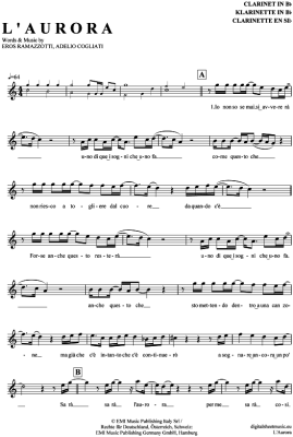 L'Aurora - Sheet Music for Clarinet in B-flat Eros Ramazzotti