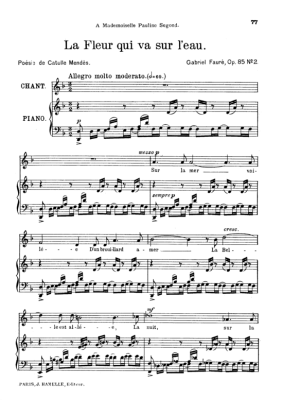 La fleur qui va sur l'eau Op.85 No.2 - Sheet Music for High Voice and Piano Gabriel Fauré