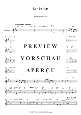 Dieses Notenheft enthält die Originalnoten zum Song "La - Le - Lu" für Tenorsaxophon. Leichter Schwierigkeitsgrad in F-Dur.