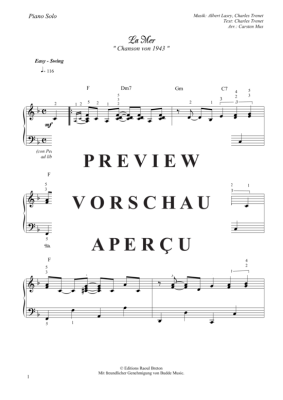 La Mer ( F - Dur) - Sheet Music for Piano Solo Lasry, Albert/Trenet, Charles Louis Augustin Georges
