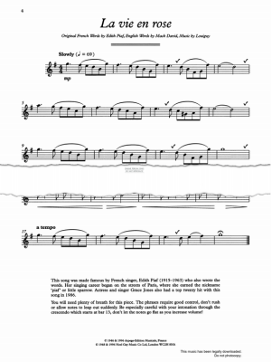 La Vie En Rose, composed by Louiguy and arranged for alto saxophone with piano accompaniment.