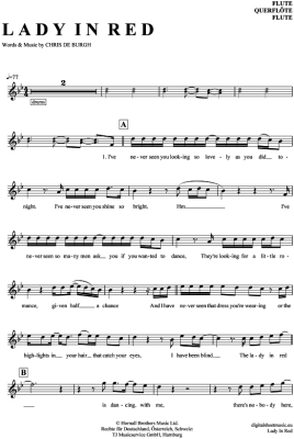 Lady in Red - Sheet Music for transverse flute Chris de Burgh