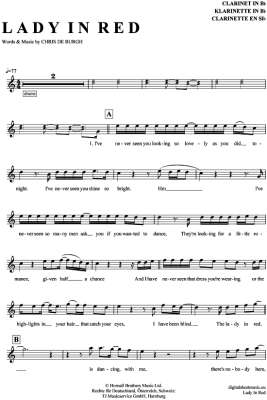 Lady in Red - Sheet Music for Clarinet in B-flat Chris de Burgh