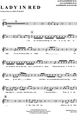 Lady in Red - Sheet Music for Alto Saxophone Chris de Burgh