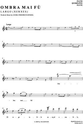 Largo - Ombra Mai Fu - Sheet Music for transverse flute G. F. Haendel (aus: Xerxes) / Fritz Wunderlich