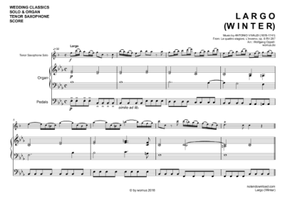 Largo (Winter) - Sheet Music for tenor saxophone and organ Antonio Vivaldi (arr. WO)