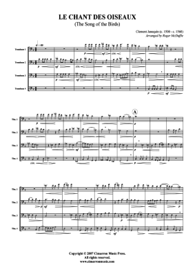 Le Chant des Oiseaux - Sheet Music for Trombone Quartet Clement Janequin