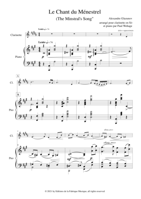 Le Chant du Ménestrel, Opus 71 - Sheet Music for clarinet in Bb + piano Alexandre Glazunov/Paul Wehage