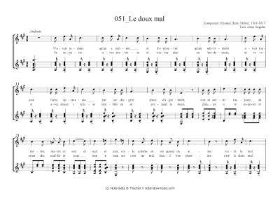 Le douxmal - Sheet Music for guitar + vocals Etienne Henri Mehul, 1763-1817