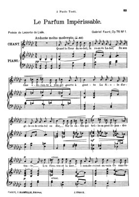 Le parfum impérissable Op.76 No.1 - Sheet Music for High Voice and Piano Gabriel Fauré
