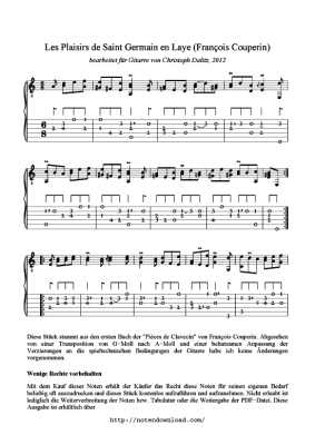 Le Plaisirs de Saint Germain en Laye - Sheet Music for Gitarre Solo Francois Couperin (arr. Christoph Dalitz)