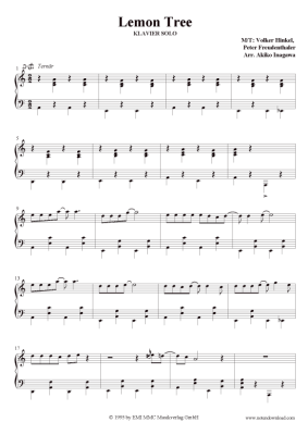 Lemon Tree - Sheet Music for piano solo medium easy Fool's Garden