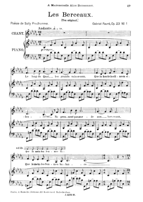 Les berceaux Op.23 No.1 - Sheet Music for Medium Voice and Piano Gabriel Fauré