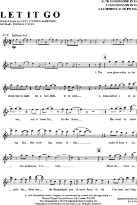 Let it go - Sheet Music for Alto Saxophone Idina Menzel (aus: Frozen)