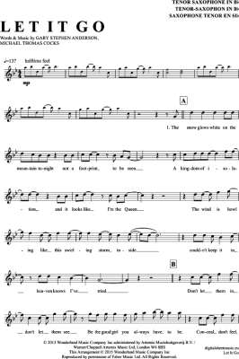 Let it go - Sheet Music for Tenor Saxophone Idina Menzel (aus: Frozen)