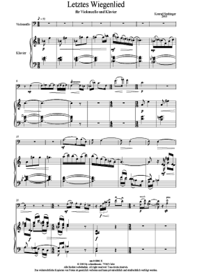 Letztes Wiegenlied - Sheet Music for Cello + Klavier Konrad Seckinger