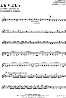 Levels - Sheet Music for Clarinet in B-flat Avicii