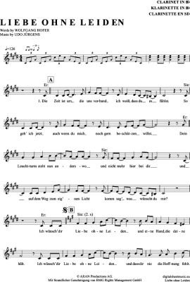 Liebe Ohne Leiden - Sheet Music for Clarinet in B-flat Udo Jürgens