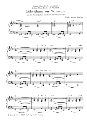 Liebesthema aus Winnetou - Sheet Music for Piano solo, D major aus: Winnetou I (Film)
