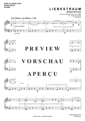 Liebestraum (Dream of Love) - Sheet Music for Piano Easy Franz Liszt (arr. WO)