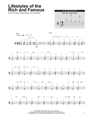 Lifestyles Of The Rich And Famous - Sheet Music for Good Charlotte