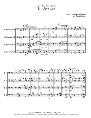 Linden Lea - Sheet Music for Euphonium Quartet Ralph Vaughan Williams