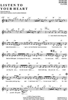 Listen to your heart - Sheet Music for Keyboard Roxette