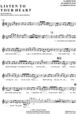 Listen to your heart - Sheet Music for Clarinet in B-flat Roxette