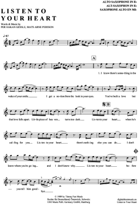 Listen to your heart - Sheet Music for Alto Saxophone Roxette