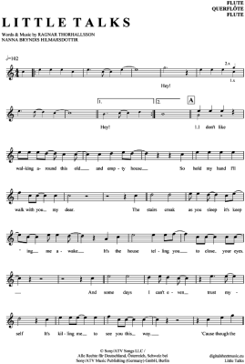 Little Talks - Sheet Music for transverse flute Of Monsters And Men