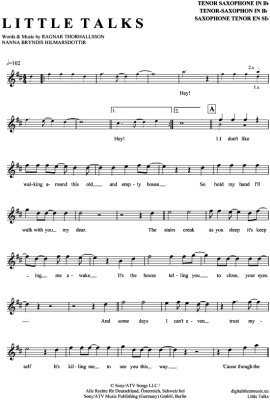 Little Talks - Sheet Music for Tenor Saxophone Of Monsters And Men