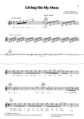 The official MLC arrangement ofย Living On My Ownย by Freddie Mercury, in digital sheet music format.