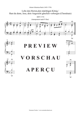 Lobe den Herren, den mächtigen König BWV 57/8, F-Dur - Sheet Music for Orgel Solo Johann Sebastian Bach