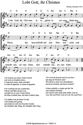 Lobt Gott, ihr Christen - Sheet Music for Recorder Duet Weihnachtslied (sehr einfach)
