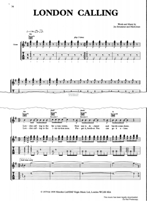 London Calling, by The Clash. Arranged for guitar tablature in digital sheet music format.