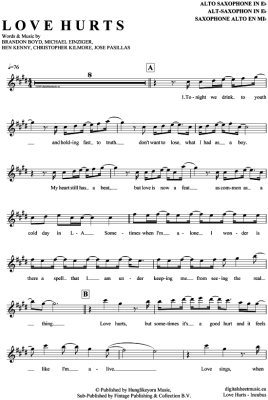 Love Hurts - Sheet Music for Alto Saxophone Incubus