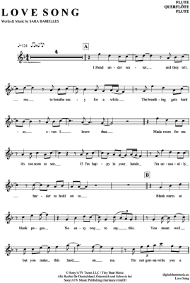 Love Song - Sheet Music for transverse flute Sara Bareilles