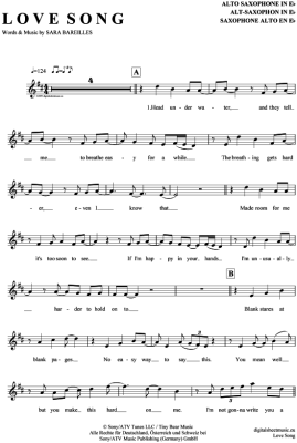 Love Song - Sheet Music for Alto Saxophone Sara Bareilles