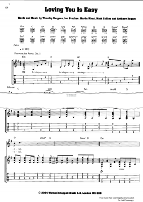 Loving You Is Easy by The Charlatans. Arranged for voice with guitar chords in digital sheet music format.
