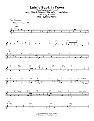 Lulu's Back In Town - Sheet Music for Branford Marsalis
