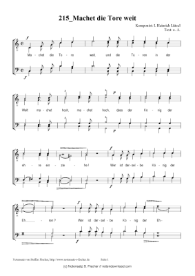 Machet die Tore weit - Sheet Music for male choir Jakob Heinrich Lützel