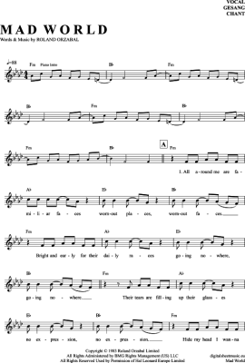 Mad World - Sheet Music for vocals Michael Andrews/Gary Jules