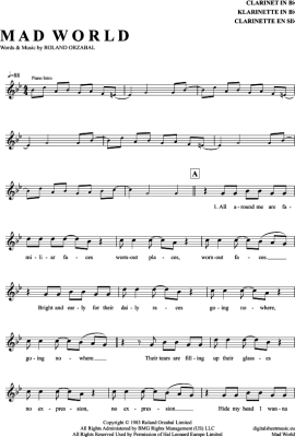 Mad World - Sheet Music for Clarinet in B-flat Michael Andrews/Gary Jules