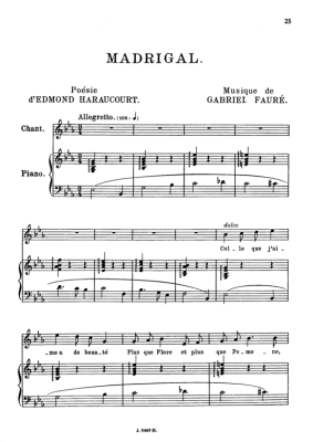 Madrigal Op.57 No.3 - Sheet Music for Medium Voice and Piano Gabriel Fauré