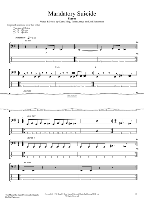 Mandatory Suicide - Sheet Music for Slayer