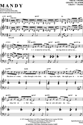 Mandy - Sheet Music for Voice with Piano Accompaniment Barry Manilow