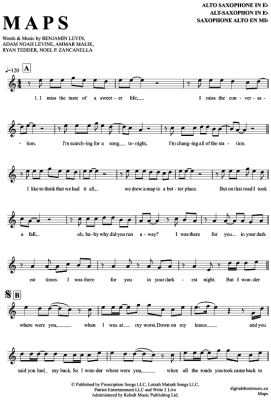 Maps - Sheet Music for Alto Saxophone Maroon 5