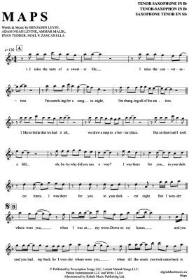 Maps - Sheet Music for Tenor Saxophone Maroon 5
