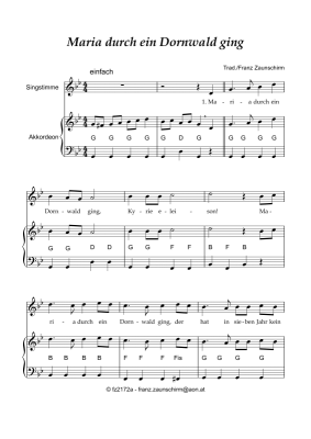 Maria duch ein Dornwald ging - Sheet Music for Accordion and vocals Traditional