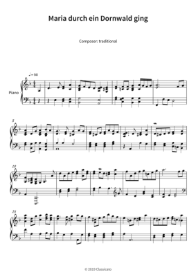 Maria durch ein Dornwald ging - Sheet Music for Piano Solo traditional